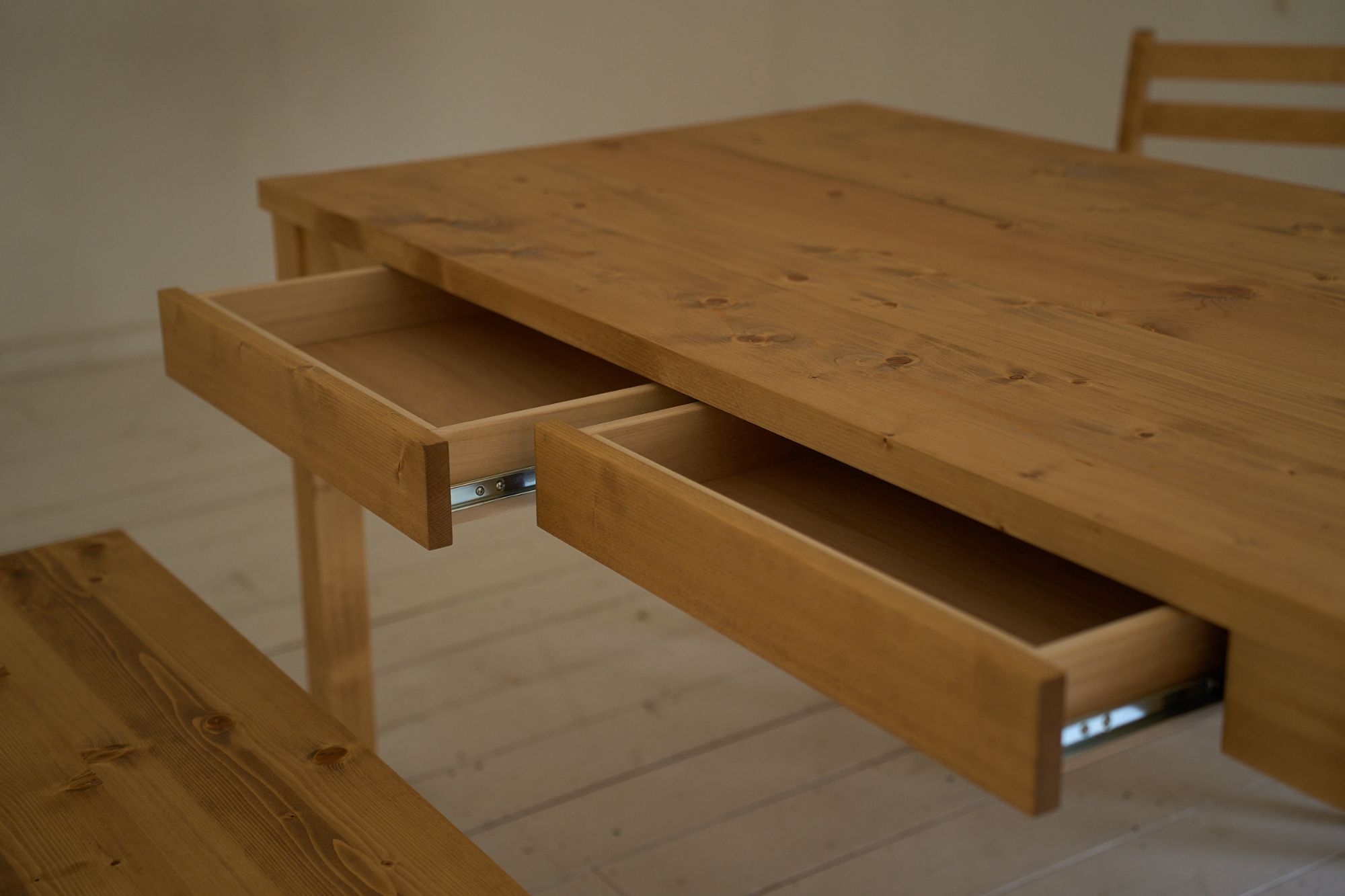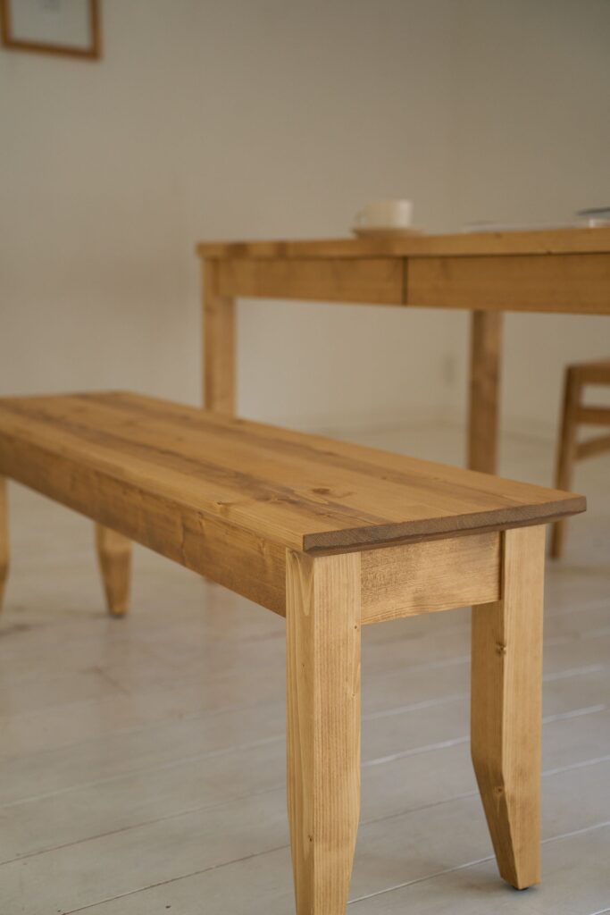 椅子とベンチの座面まで全てが無垢材で、自然の魅力を存分に楽しめるセットです。