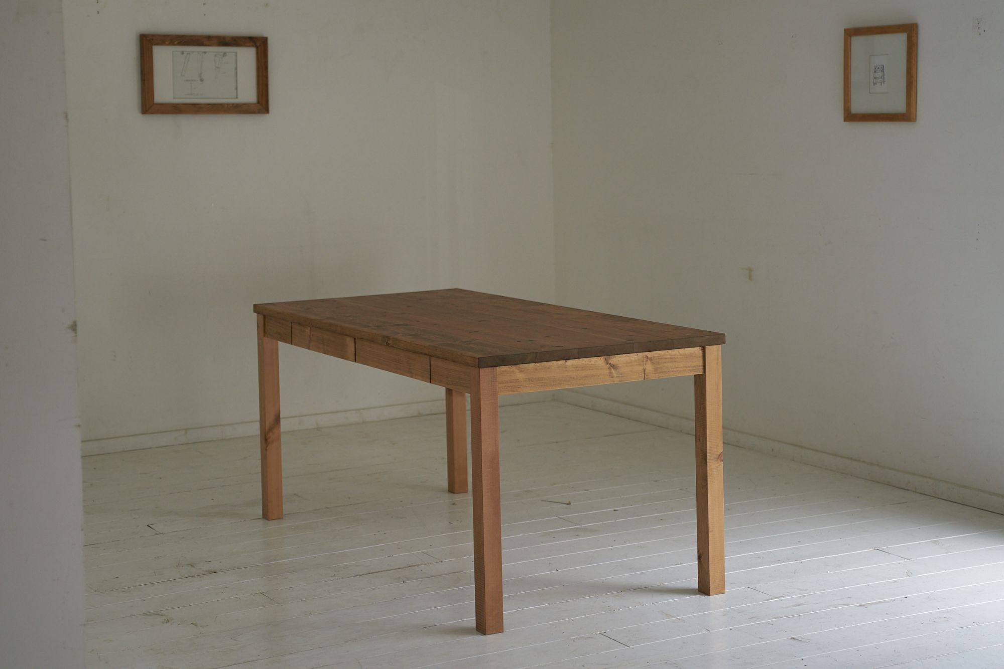 幅160センチのダイニングテーブルとベンチ、椅子2脚の合計4点セット。