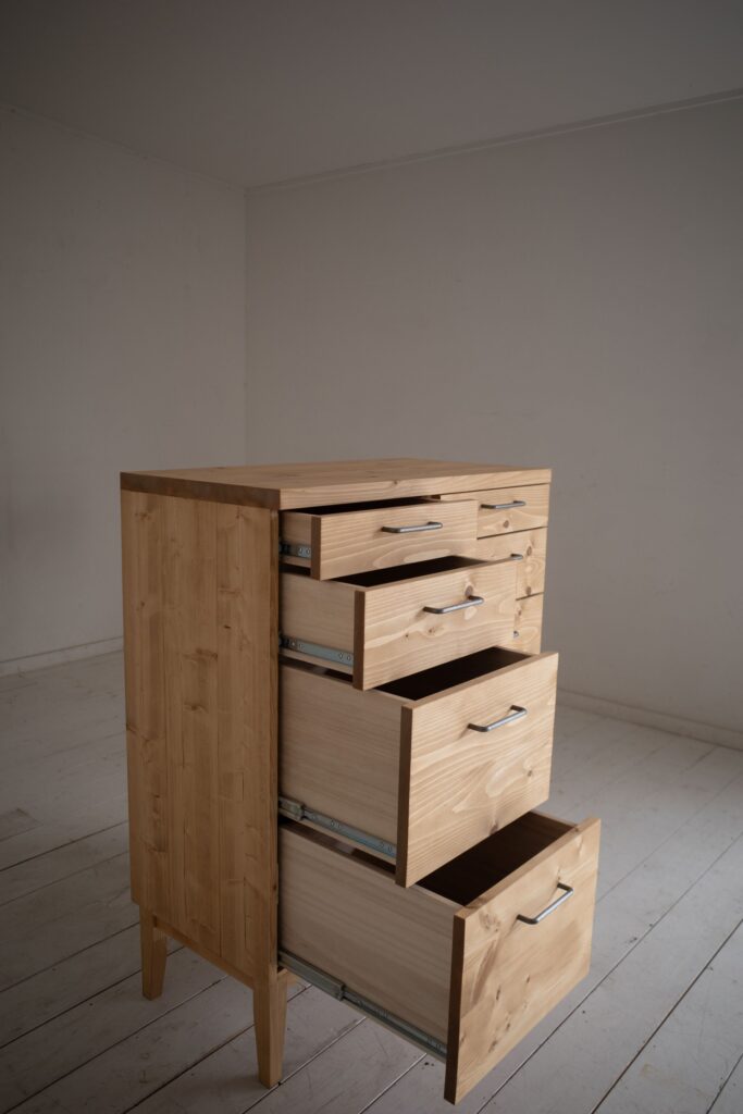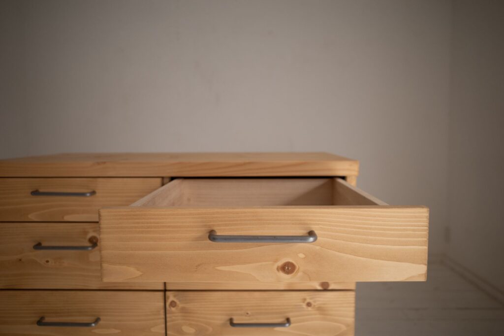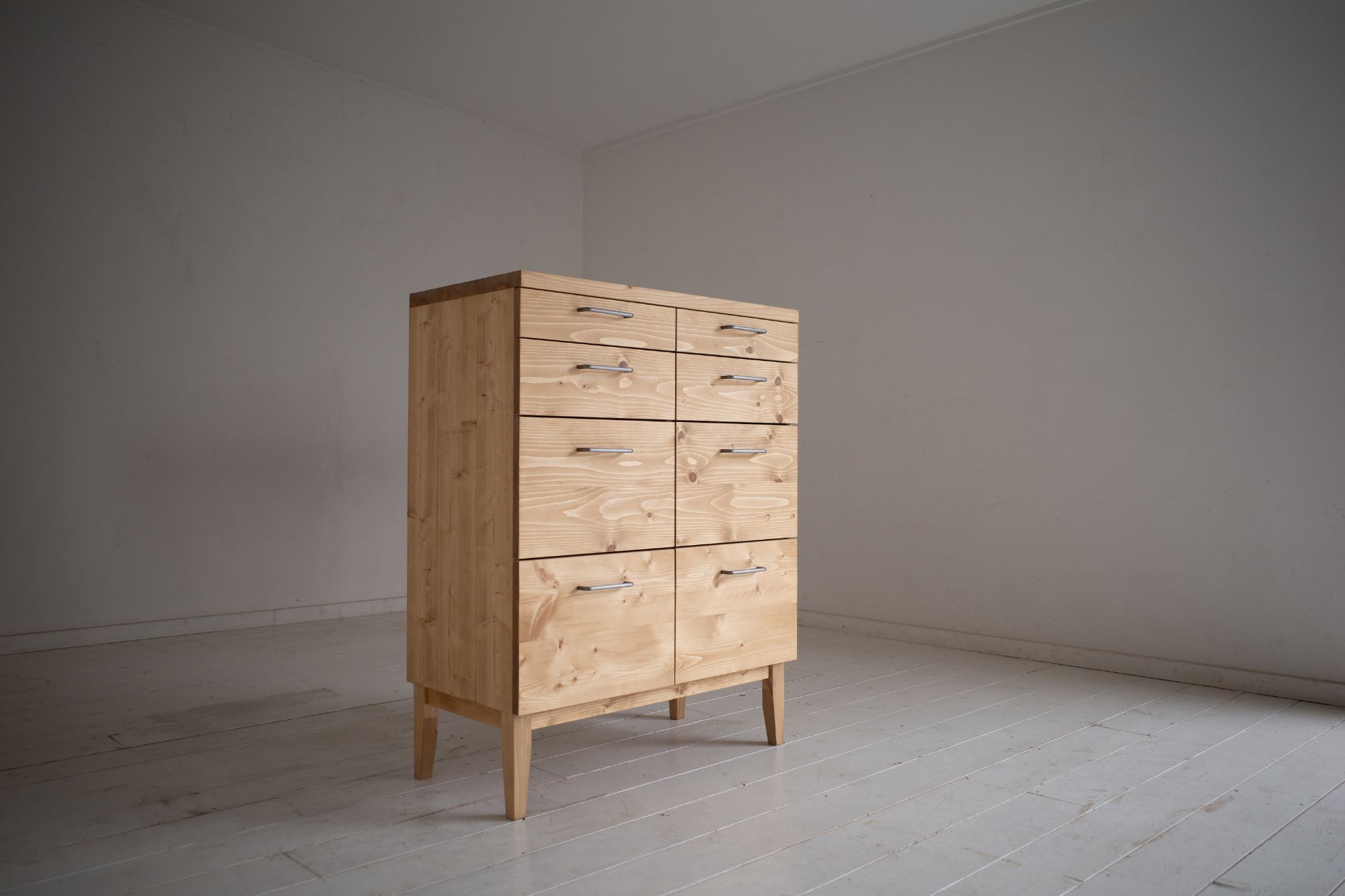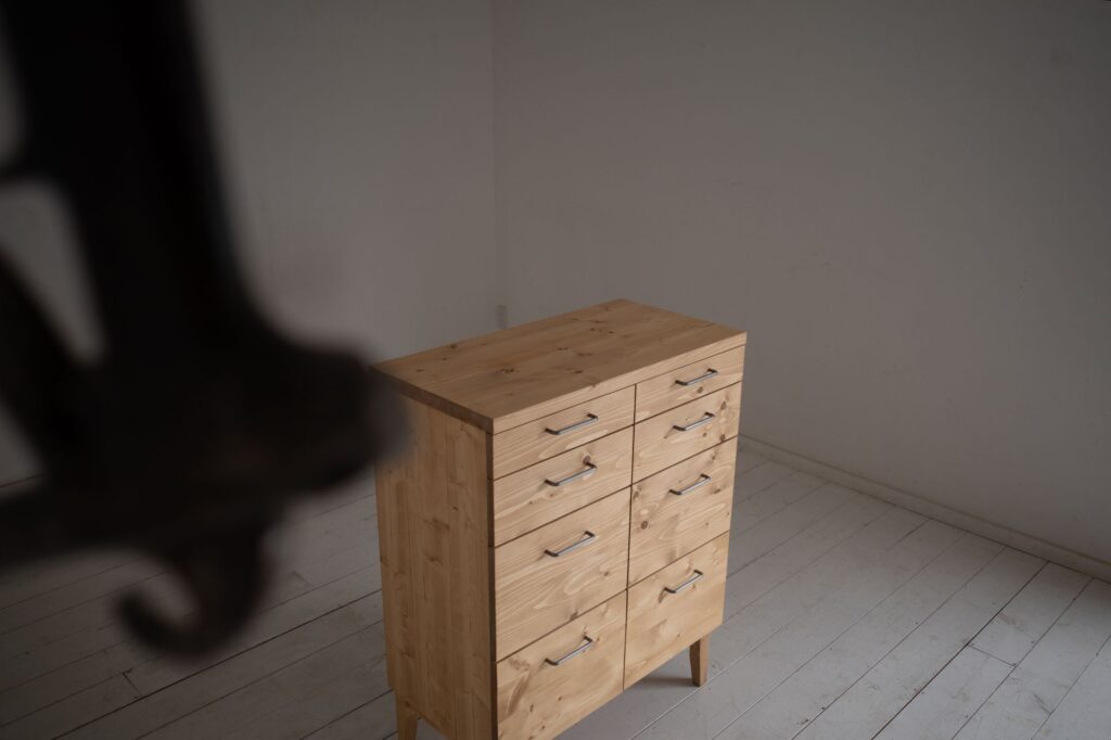 上は浅く、下は深く。グラデーションデザインの引き出しチェストです。