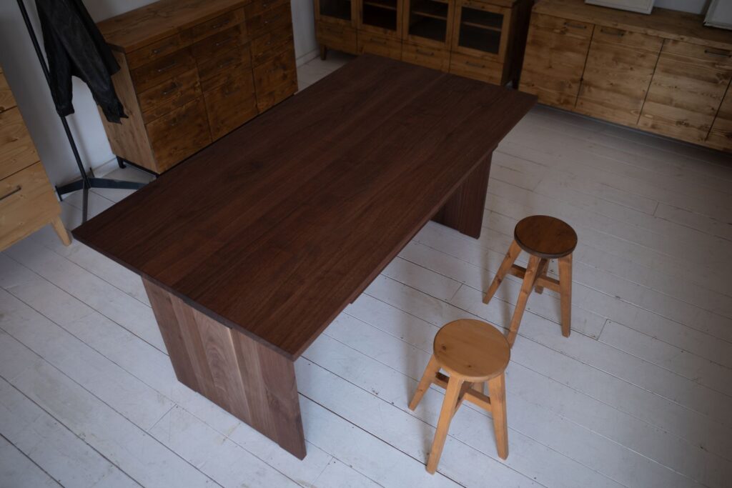 ウォルナット製のダイニングテーブルになります。