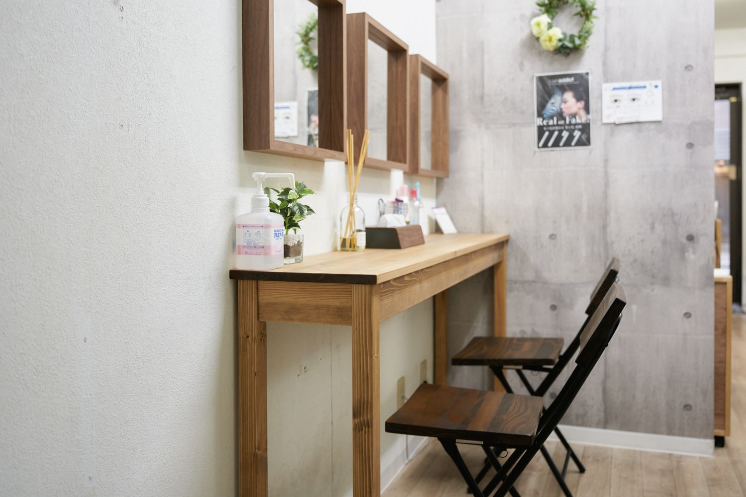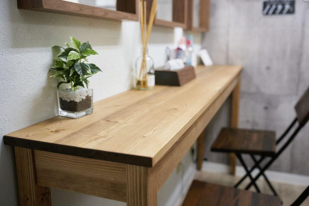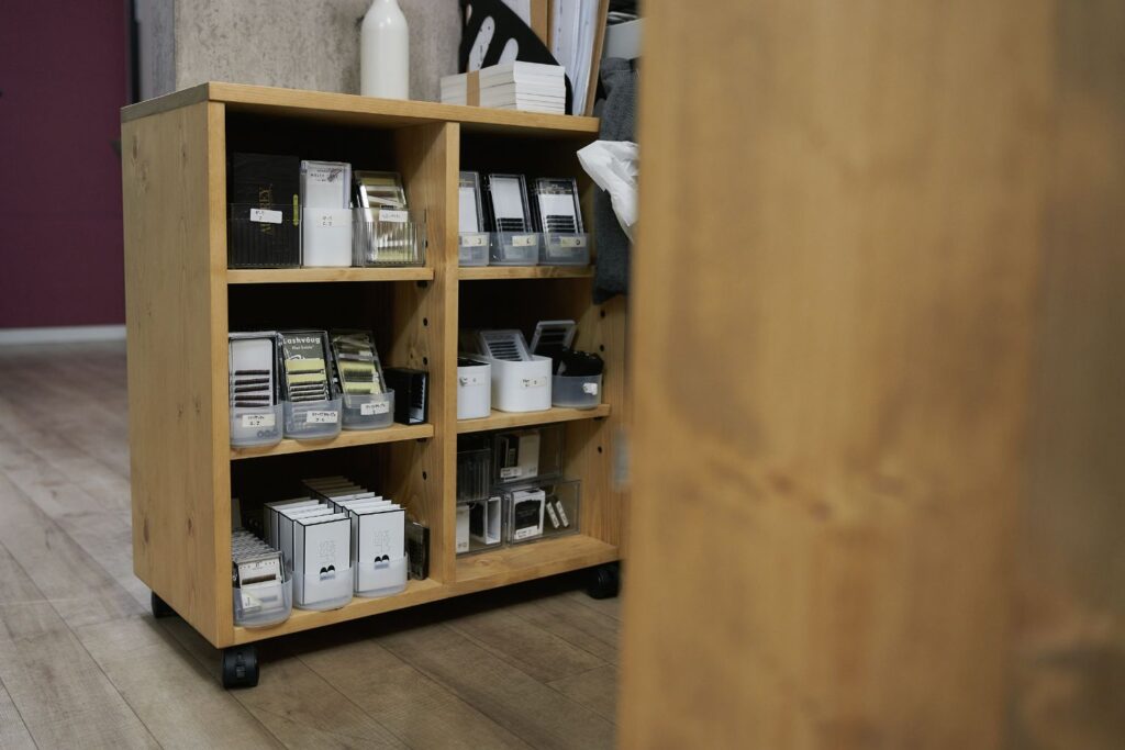 東京都内のアイラッシュサロン様からご依頼頂いた、スタイリングテーブル・受付カウンター・収納ワゴンになります。