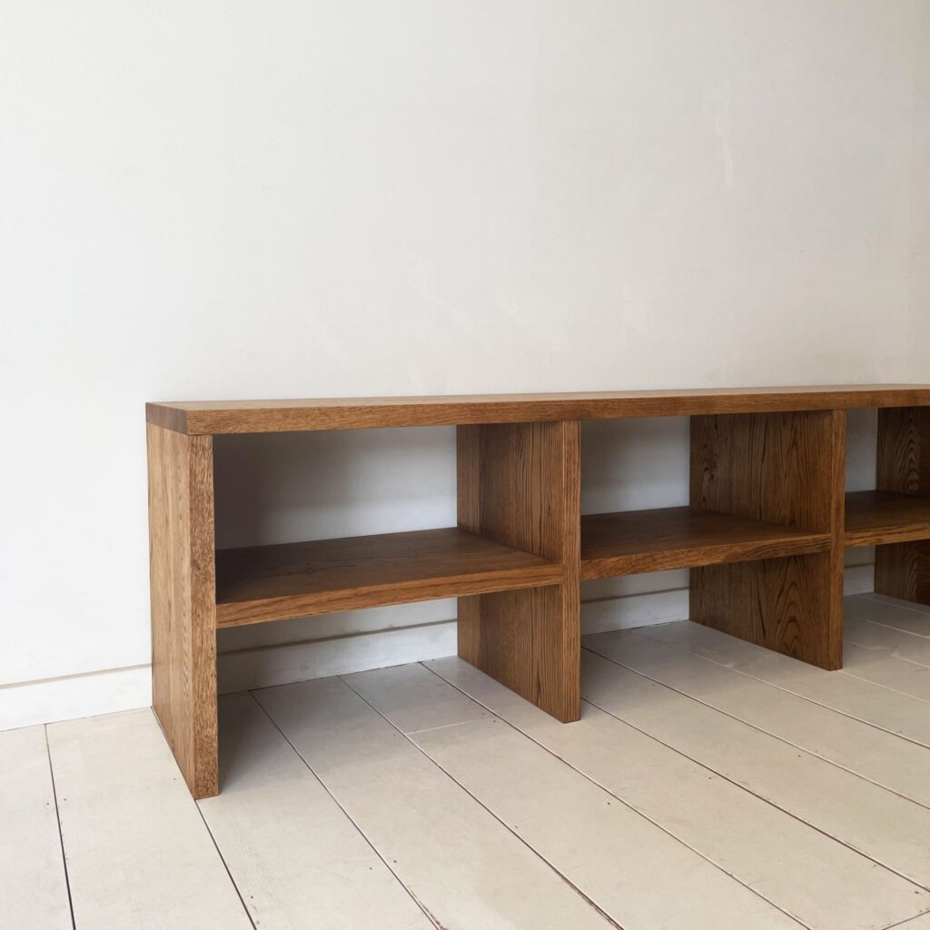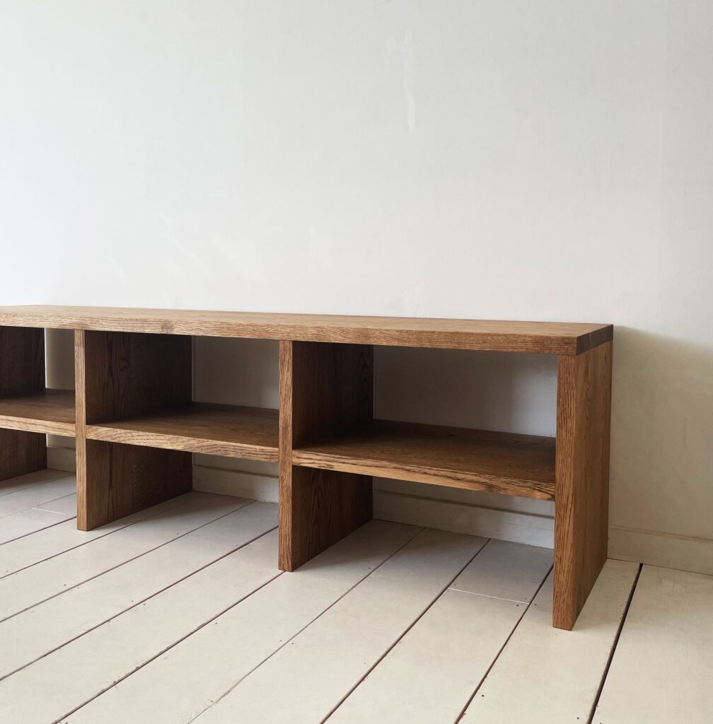 楢で製作したテレビボード。お客様提案のオリジナルデザインです。