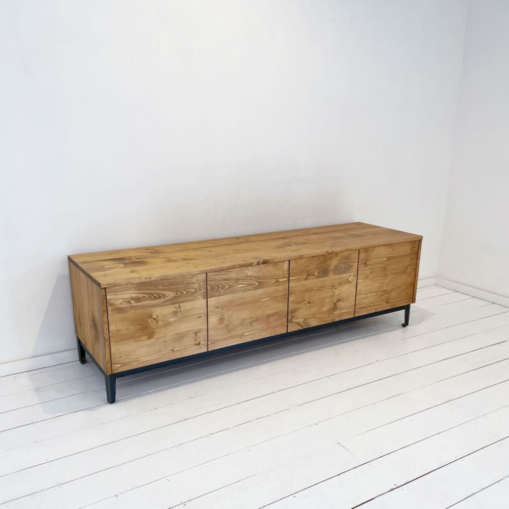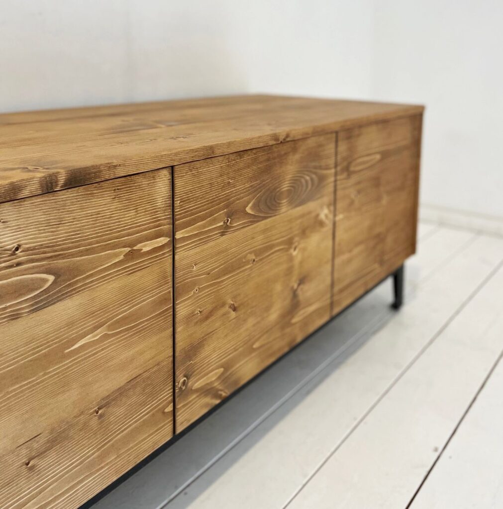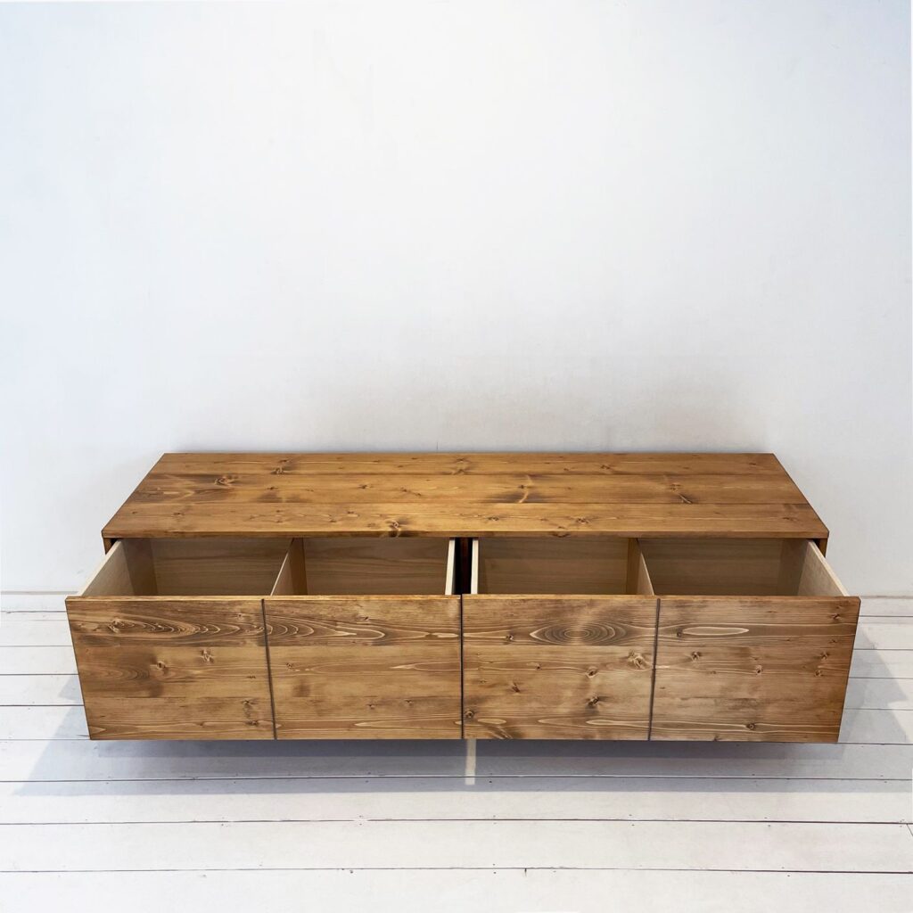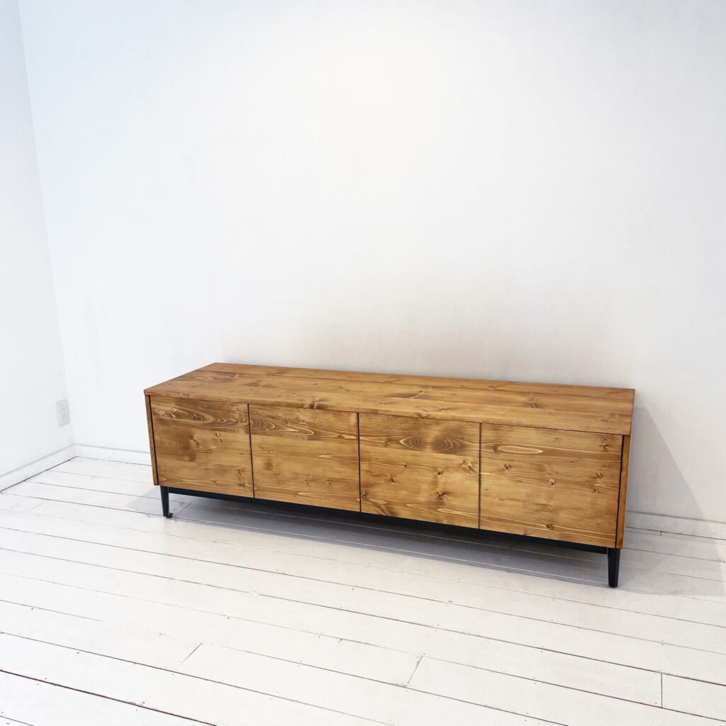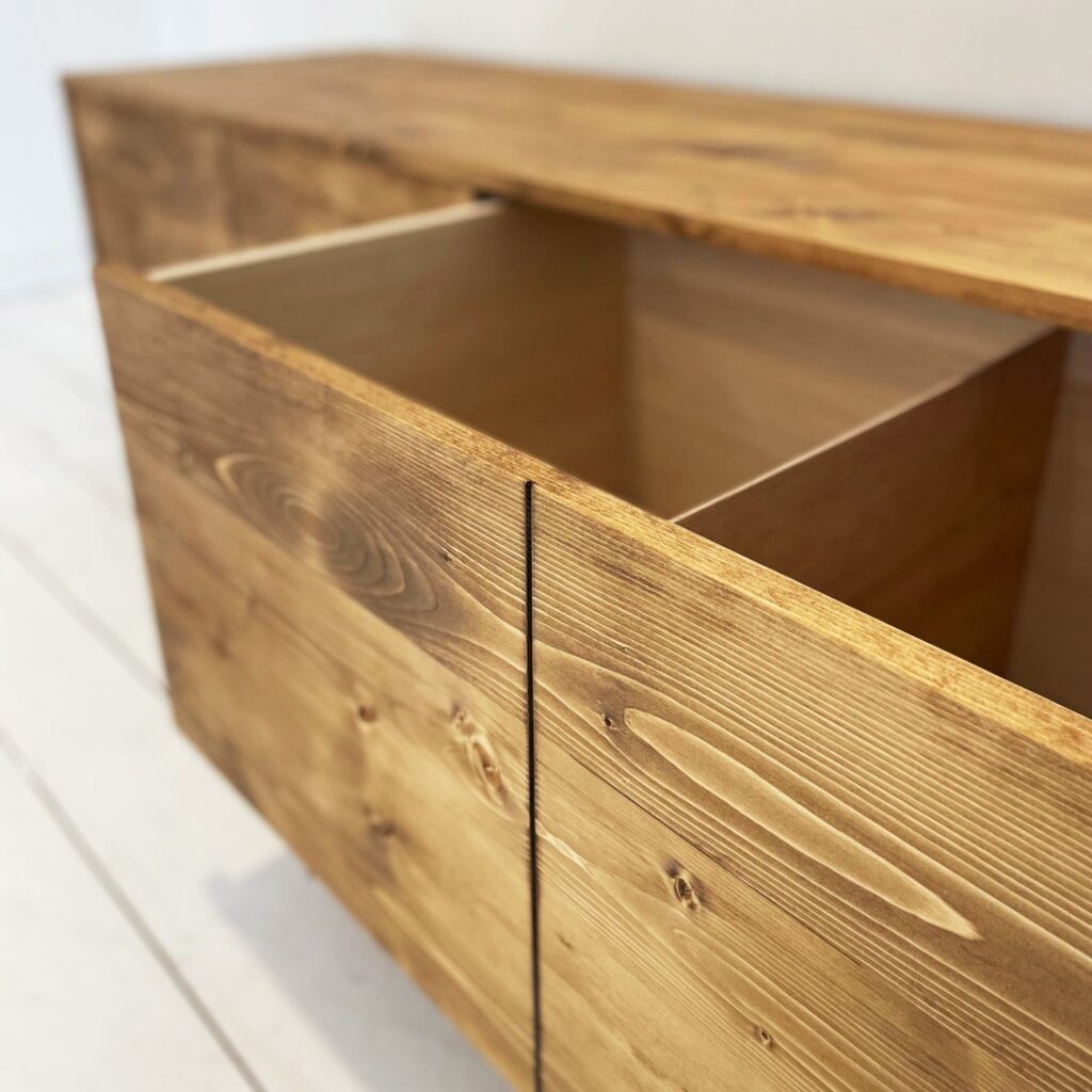 大型のTVボード。引き出しはプッシュオープン式を採用しました。
