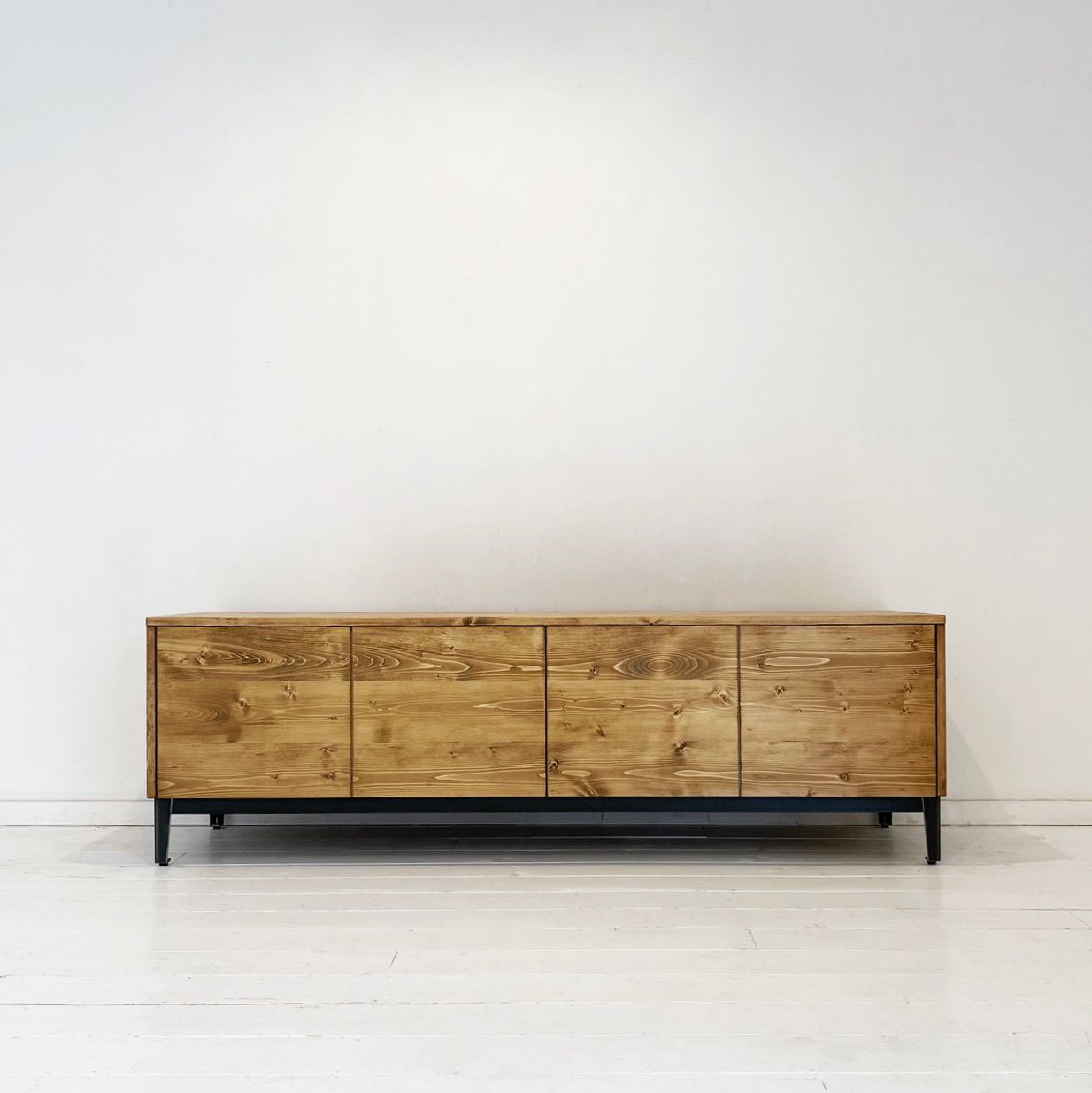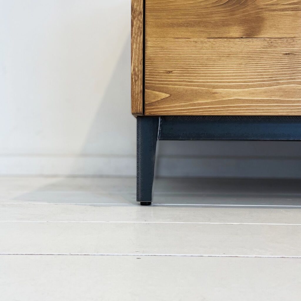 ハンドルレスデザインと、アイアンの脚が好影響となっているのではないでしょうか。水平・垂直が際立ち、綺麗な四角いデザインに仕上がりました。